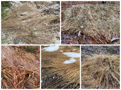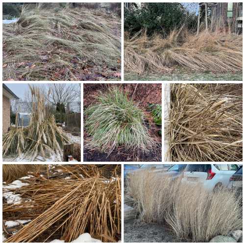 Mäßig standfeste Gräser mit eher wenig attraktiver Struktur nach Winternässe und Schneelast