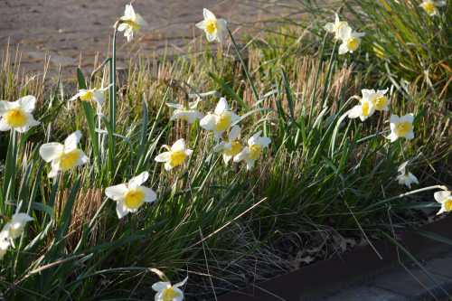 Funktioniert gut: Narzissen (hier: Top-Sorte 'Ice Follies', Blüte ab etwa Ende März) beleben die Pflanzplätze der bereits zurückgeschnittenen hohen Miscanthus, die mit ihrem Neuaustrieb wiederum die abgeblühten Narzissen kaschieren